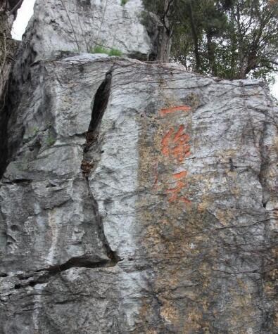 一線天在石公山中部南坡。原名“風弄穿云澗”。兩壁青蒼,石隙成縫,狹小僅容一人上下,“一線天”三字,由蘇州著名書畫家謝孝思先生手書,何根金石匠鐫刻。
